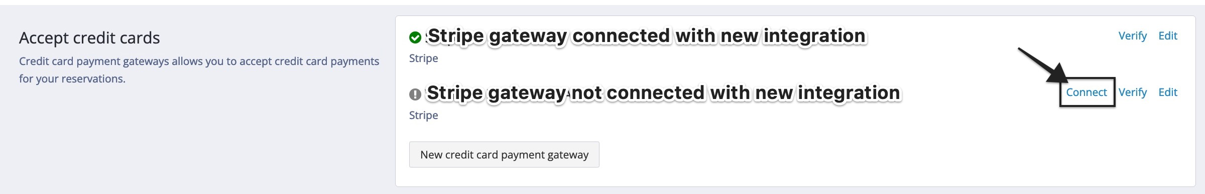 If you are connecting your existing Stripe account to our new Stripe Connect integration, you can go to Settings > Payments in your Smily Account. You will see a list of payment gateways. For any Stripe gateways that are not yet connected, you will see a small warning symbol and a link to connect. Click the connect link and you will be directed to https://connect.stripe.com/oauth to authorize the connection of your Stripe account with Smily.