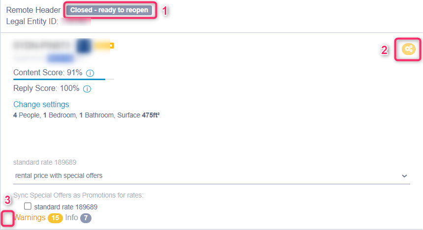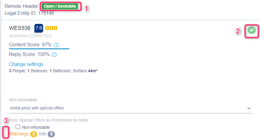 The synchronisation of the property between Bookingsync and Booking.com is good: