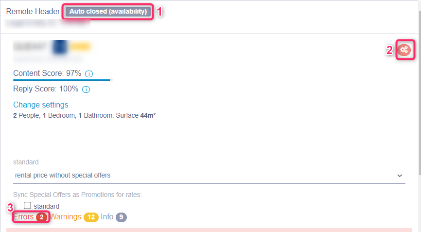 The synchronisation of the property is good but the property is "Auto-closed" on Booking.com because the calendar does not have any availability