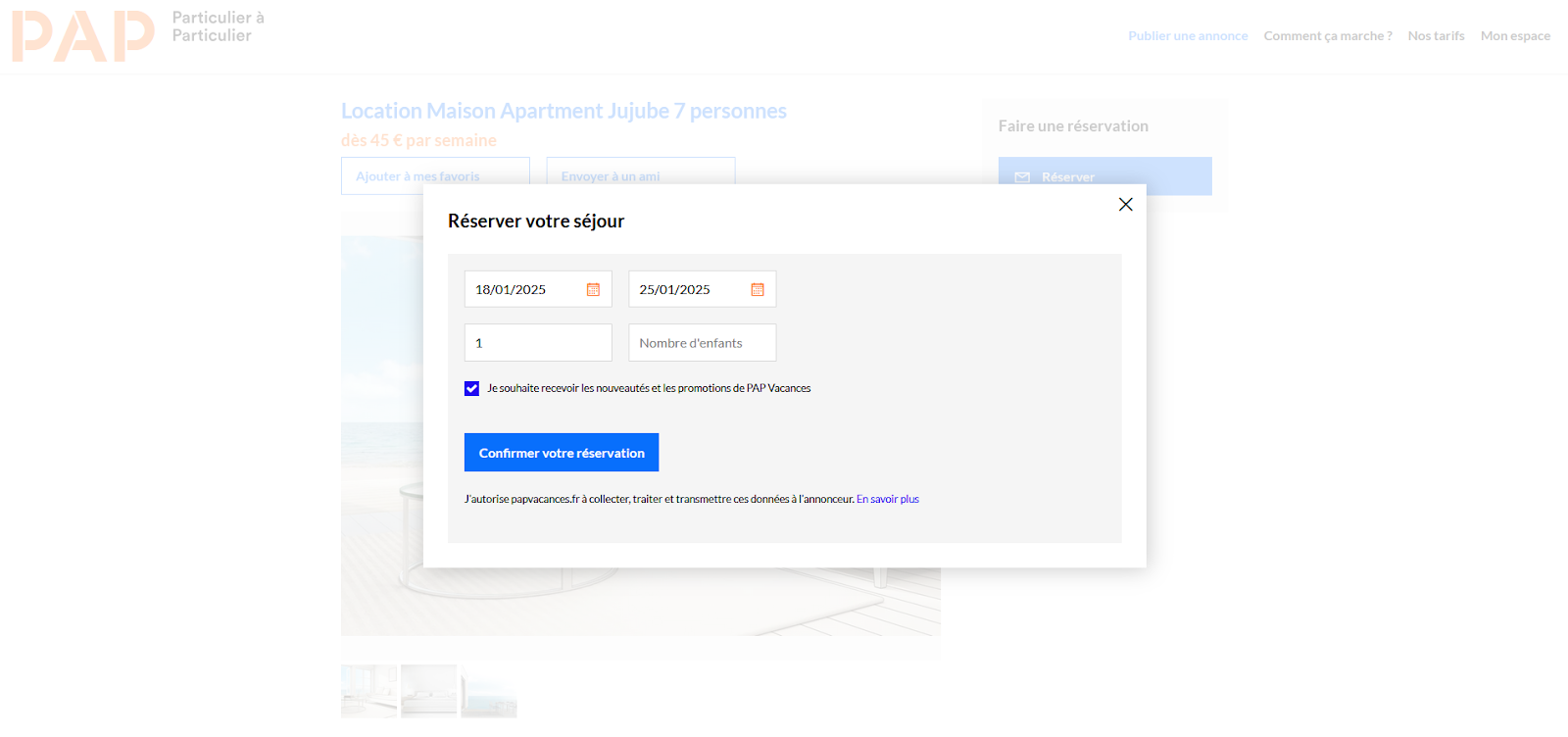 PAP Vacances is a french ad website owned by the PAP group listing 25,000 properties in Europe.