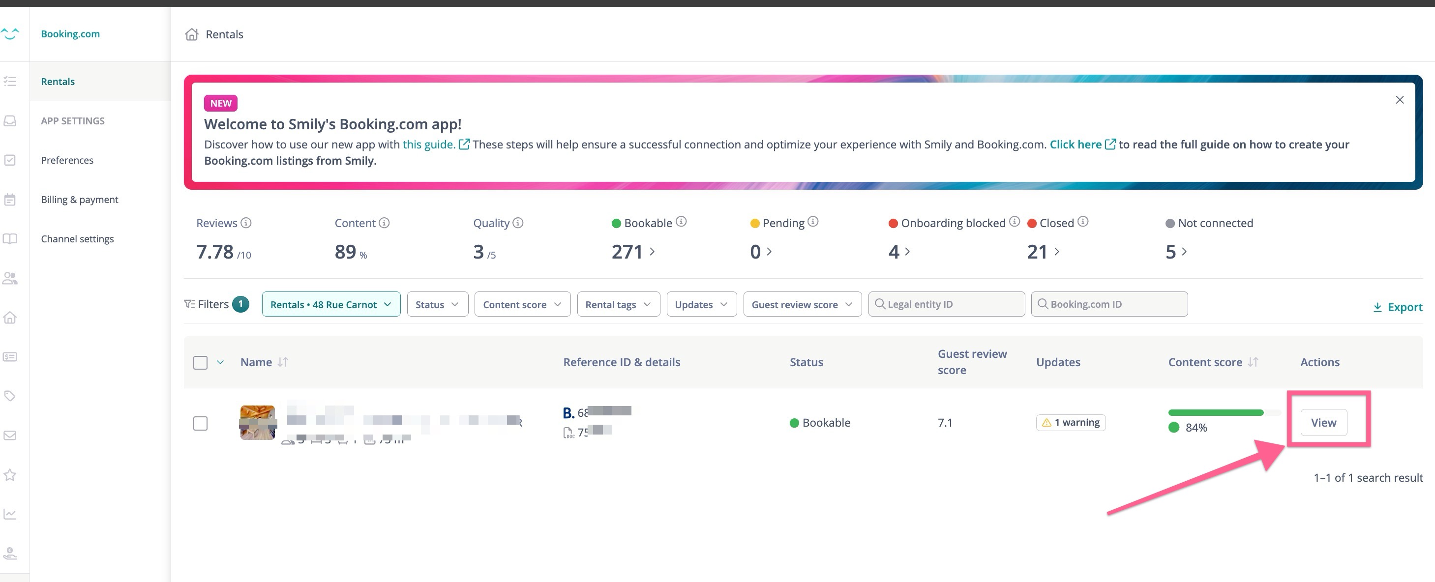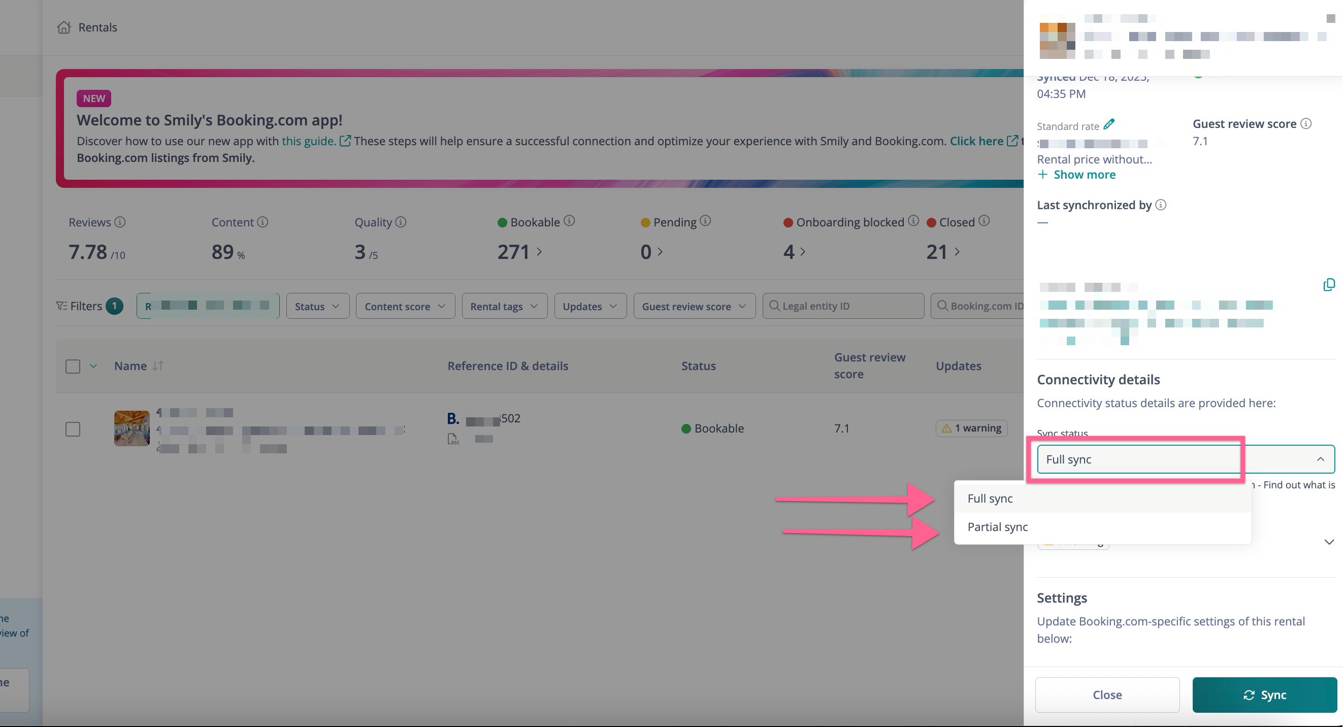 Note 1 : The listings that you push and create from Smily to Booking.com (as explained here) are automatically set to Full Sync (CAPI).