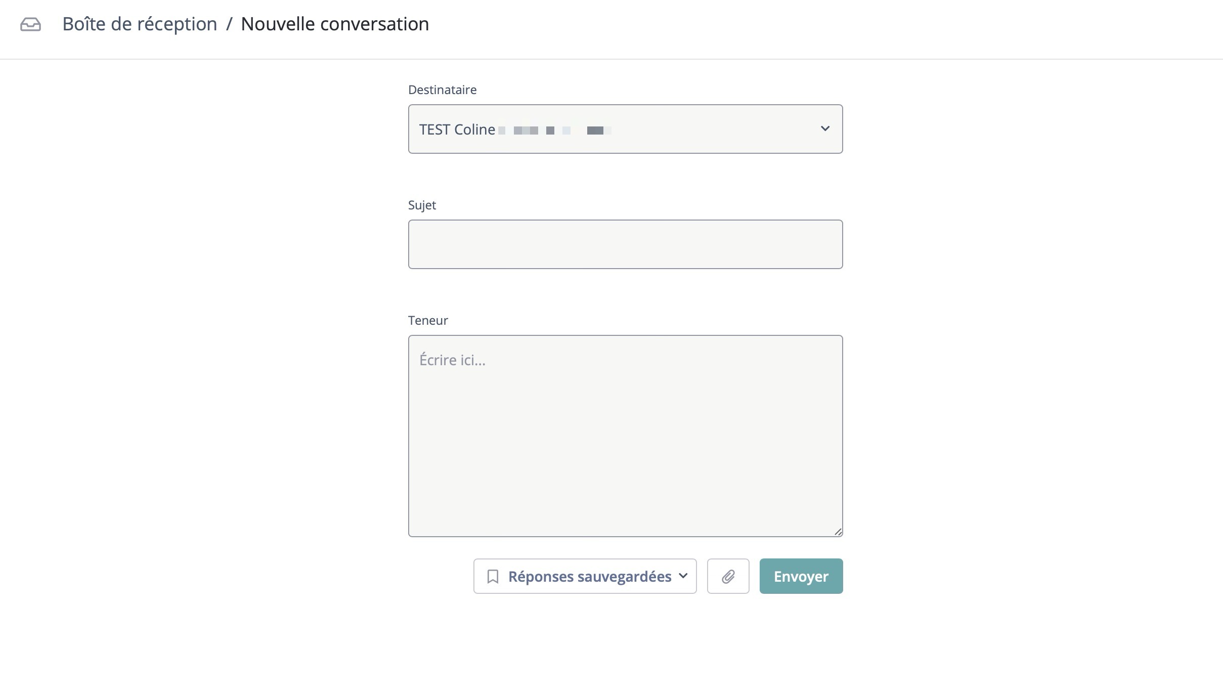 - S'il s'agit d'une nouvelle conversation, vous devrez saisir le sujet et le contenu du message.