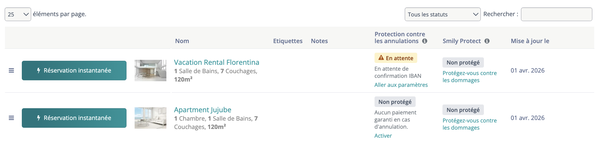 - Visibilité immédiate : vous identifiez instantanément les locations protégées sans devoir ouvrir chaque fiche.