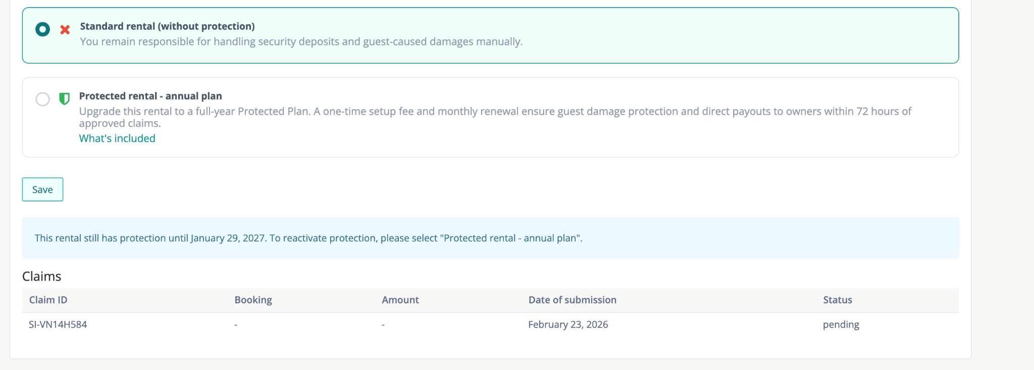 - Si l’inscription n’a pas démarré ou si le logement n’est pas éligible, la section « Claims » peut ne pas apparaître.