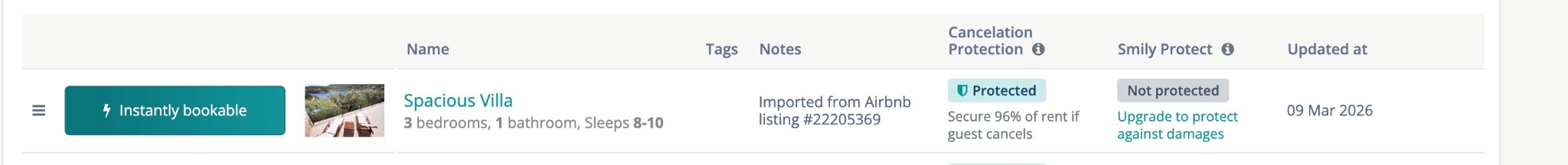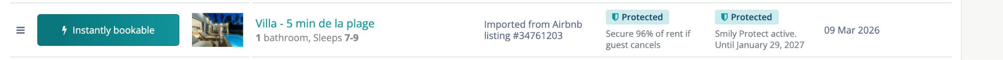 Smily Protect permet de protéger vos locations contre les dommages et d'obtenir un audit professionnel de vos annonces pour augmenter votre conversion. Cet article explique comment activer ces services sur un logement et ce que vous verrez dans l’interface selon l’état de protection.
